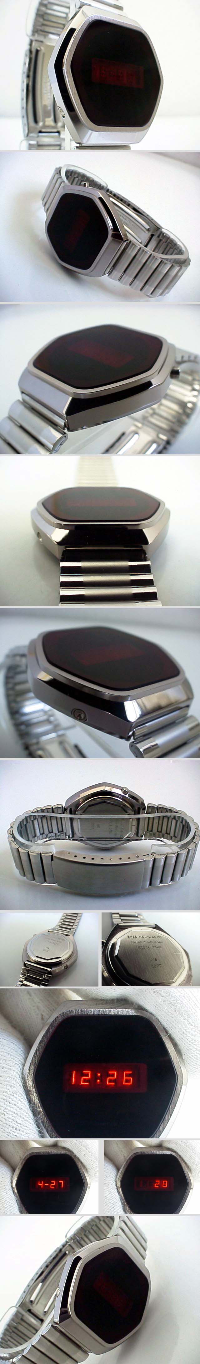 Microsonic LED Uhr Modell MS 2037 Schicke LED Uhr der amerikanischen Firma Microsonic in massivster Metallausführung. Hochglanzpolierte und gebürstete Oberflächen, Original-Edelstahlband. Hochwertiges Modul der amerikanischen Firma Hughes Aircraft. Voll funktionsfähig und ganggenau. Die hohe Genauigkeit wird hierbei durch eine mehr als 20mal höhere Schwingfrequenz von 786432 Hertz (üblich sind 32768Hz) erreicht. Module von Hughes Aircraft wurden häufig in sehr hochwertigen LED Uhren, wie Longines, Wittnauer, Bulova, Jaeger-LeCoultre und anderen renommierten Manufakturen verwendet. Neuwertigster Zustand aus unverkaufter Lagerware 70er Jahre. Microsonic LED watch in 100% NOS condition, never used, never sold! High quality module by Hughes Aircraft, 5 functions. |